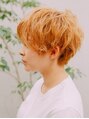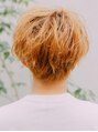 ネープギリギリのスッキリしたショートに、上からかぶせるように少し重ためのボリュームでカットしました!カラーは14トーンのブラウンにオレンジを足して、暖かみのあるカラーにしました!
