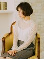 アゴラインの平行ボブスタイルです☆毛先は内巻きワンカールでエレガントに♪♪前髪も目の上でななめに流してキュートな感じを演出しました!!!カラーはナチュラルなオレンジベージュで、上品に可愛らしさをプラスしてあります。