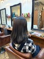 赤みを消した欧風カラーで、毛量を取り過ぎずに重さを残したシンプルなミディアムスタイルです。