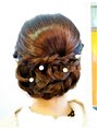 両サイドの髪の毛を大き目にねじり編みにして交差させ、バックの髪の毛と一緒にまとめました♪編み込みや全体の崩し方は好みが出る部分なので、カウンセリング時に一緒に考えましょう(^^)/