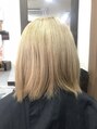 ハイトーンからの黒染めです。元々段の入ってないスタイルだったので、そのままだと重たくなってしまうため、ばっさりすっきり前下がりショートにしました^_^量も減らし、手入れのしやすいスタイルです!