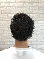 中をガッツリツーブロックして上から被せる髪の毛を細かくパーマかけてます。直毛で動きにくい髪質でもしっかりあたっているので朝のスタイリングも楽になります!