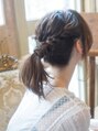 ポニーテールにみつあみをプラスして、一手間加えたアレンジです。みつあみも裏編みにして立体感を出すようにすると可愛さアップ!トップも少しずつ毛束を引き出すように遊びをつくって無造作感をプラス。ボブスタイルの方におすすめです!【大島】