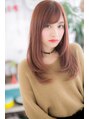 斜めバングと毛先ワンカールのストレート。ナチュラルだけど女の子らしいモテのテッパンスタイル。スポンテニアスカラーで個性的に仕上げてオンリーワンなヘアにすると旬顔。オレンジ系でポップな雰囲気にしたり、ピンク・レッド系でグラマラスにしてもOK!