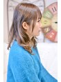 【インスタグラムID:shiko_kajihara】長めのミディアムのゆるふわカールです!前髪はシースルーパッツンで束感のあるパッツンにしました!11トーンのフォギーグレージュで赤味を抑えた透明感のある色味に。