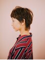マッシュラインの前髪がポイントのショートスタイル。サイドはショート感でるようにすっきりとカットしつつも襟足はちょっと長めに女性らしいラインに。トップはふわっとした質感がでるようにカットしています。