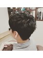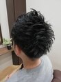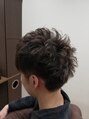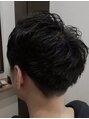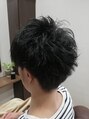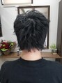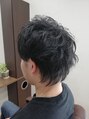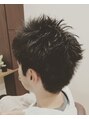 毛量調整で軽さを演出。ハードワックスで束感を出してひし形シルエットを意識してスタイリングしました。