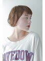 レングスは、襟足ギリギリに設定。トップにはレイヤーをいれいて、軽めのシルエットにしています。ボブベースですが、段をしっかりいれているので、ショートのような雰囲気のスタイルです!前髪は、眉上でカットして、個性的な顔まわりに!