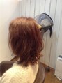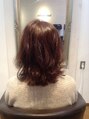 ピンクバイオレット系で深みのある色に♪ミディアムスタイルのレイヤーカットにエアーウェーブをかけています♪
