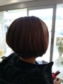 ロングヘアからの短いボブスタイルへスタイルチェンジ! 前下がりにグラデーションが入っているので小顔感が出ます。ツヤピカになるベリーズカラーで潤ツヤに仕上がってます。