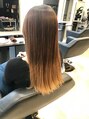 グラデーションカラーをベースに黄色、オレンジを消したモノトーンカラー♪ワンメイクで根本と毛先の明度差を生かしてます。寒色系を少し柔らかく透明感の高いカラーです♪