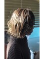 全体に細かくブリーチでハイライト入れる事によって、やわらかく透明感ある色に!さらに立体感もでるので動きが出やすくなります。オイル系のスタイリング剤とも相性がいいです。