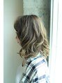 ミディアムのAラインシルエットのウェーブスタイルです。パーマで毛先中心に遊びをつくり立体感をだしています。カラーはハイライトを入れ10トーンのプラチナアッシュグレージュにより透明感とツヤ感を際立たせています。