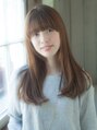 クセをしっかり伸ばして♪ 毛先はふんわり♪ 毛先をワンカールさせ柔らかい印象をつけ、やさしい印象に。 全体の印象が重ためなのをカラーで改善。 明るめのブラウンカラーで印象チェンジ♪