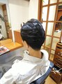 パッとみた感じだと分からないのですが、じつはサイドに浅めのツーブロックが入っています♪ ツーブロックに抵抗ある方でもこれぐらいならばチャレンジしやすいと思いますよ♪