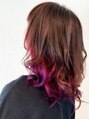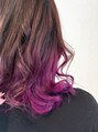 インナーカラーの カシスベリーピンクです。グラデーションでピンクからパープルになるように仕上げました。表面は バイオレットベージュです。ブリーチは必須です☆