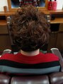 サイド、後ろはスッキリと刈り上げサイドはツーブロックに!!トップはやや重ためのグラデーションパーマをかけることで1つ1つの毛の動きをランダムに表現しましたカラーは柔らかく見せるようなレッド系をチョイスしました