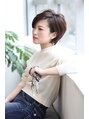 フェイスラインに長さを残してあるショートは耳にかければクールに、下ろせば少しフェミニンに、表情豊かなスタイルです。