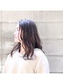 大人っぽさと、品を残したくせ毛風ロングスタイルです。骨格に合わせたカットでその人の女っぽさを引き出したロングです。カラーはカーキアッシュでロングスタイルでも重く見えないよう透明感を出しています。