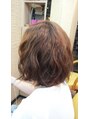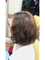 パーマがかかりずらい。でもゆるく大きいカールがほしいので、ビックロットで、しっかり時間を置いて施術。襟足、サイドは内巻きに^^