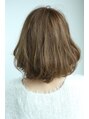 強すぎないカールで柔らかさを出し、長めの前髪で大人っぽさも演出。ボブなのですがAラインのシルエットになっているのも特徴的です。カラーは11トーンのイエローベージュアッシュカラーで透明感を出しています。