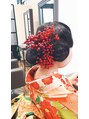 シニヨン、フィンガーウェーブ、ラジオ巻きを取り入れつるっとまとめました!着物の際、個性的に仕上げたい方におすすめです。
