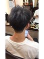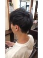 ツーブロックのナチュラルショート。ワックスでトップを立たせ、手入れが楽なように。カラーは、透明感のあるアッシュカラーでクール感を。