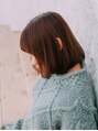 肩上の切りっぱなし風ボブスタイルも前髪も隙間を作り抜け感を作りました☆顔まわりを内に入れるようにゆるく巻いてあげるとほんのりキュートな印象に。