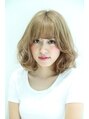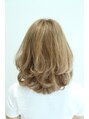 ミディアムのウエーブ、スタイルです。カットで丸さをつくり、コールドウエーブで毛先中心に遊びをつくり立体感をだしています。カラーは14トーンのプラチナアッシュブラウンにより透明感をだしています。
