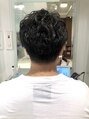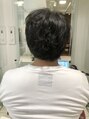 カットでタイトなスタイルにし襟は4mmのグラデーション刈り上げ。毛流れが出来やすいように量を減らしてパーマでふんわりするように作りました。