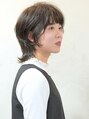 フロントをマッシュに切り込んだマッシュウルフスタイル。パーマで柔らかな動きをつけてハードなテイストになりすぎないようにしています。