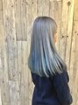 - ホワイトに近いブリーチをして、インナーカラーの淡いブルーに全体に プラチナシルバーを入れてあります。