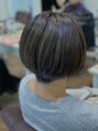 白髪染めのお客様にもハイライトをプラス!根元は明るく白髪染めをハイライトを入れる事で明るい印象へ中間から毛先はイルミナカラーを使いダメージを抑え透明感のあるカラーへ!!グラデーションボブでトップふっくら襟足スッキリスタイル