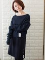 後頭部の丸みを綺麗にみせる耳かけボブ。直毛の方は32mmのコテでワンカールすると可愛くなります。「N.」オイル使用。今回も「ピアス」「トップス」「スカート」作りました。モデルさんに似合っていて良かったです。
