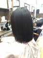 膨らみ、クセを縮毛矯正でキャンセル。少し段を入れてアイロン時に毛先の動きが出やすい様にカット♪