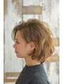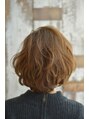 前下がりのラインで顔周りに長さを残して、小顔に。少しレイヤーが効いたナチュラルボブ☆大きくゆれるふんわりカールが大人っぽさと上品さを演出!