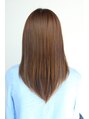 ローレイヤーベースのストレートスタイルです。前髪をつくり、日本人の特徴でもありますハチ張りもトップの位置をてっぺんにすることにより小顔効果を高めています。つやはもちろんまとまりを出す為にレイヤーはほとんど入れていません。