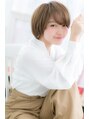 女の子を可愛く見せてくれるラブガーリーショート。コンパクトフォルムでスッキリ小頭に。前下がりで小顔にしてスタイルアップ効果を狙います。目元にかかる斜めバングで目元を印象つけて目力UP!ベージュカラーやハイトーンで明るくしても肌ツヤキレイ。