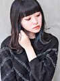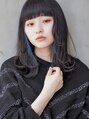 個性的黒髪モード厚めバングミディアムウルフカット前髪あり