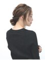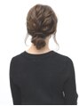 トップはロープ編込、サイドは毛束をひねり後ろでまとめたら毛先をさらにロープ編みして丸め込み、ピンで留めます。面を意識して編み込む事で、カジュアルなだけではない程よい上品さがプラス。