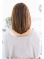 重めスタイルに見えがちなストレートミディは、シースルーバングとベージュカラーで軽さを演出。輪郭をカバーするサイドの前上がりラインで、小顔に見せつつ動きをつけます。耳かけしたり、くせ毛風カールやヴェールウェーブでフェミニン仕上げもオススメ♪