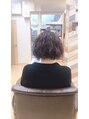 強めのパーマボブです!前髪は前にボリュームを出さず流せるよう、綿とピンで巻いております。