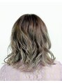 ミディアムの中途半端なレングスを、よりオシャレで今っぽくしたスタイル。透明感のあるグレージュカラーでウェーブの強弱をつけフェミニンさをアップ。