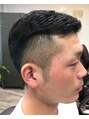流行のフェードスタイル。スーツにも似合いますし、男らしさと清潔感が共存していますので好印象ですね!フェードカットとしては若干控えめの3mmで刈り込みました。分けたい部分までガッチリバリカンを入れてサイドバックへ流します。