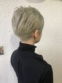 しっかりブリーチで色を抜いたあと、いつもはカラー剤で染めますが、今回はカラーバターと特殊マニキュアのミックス技です☆若干黄色味が残る抜け具合でもここまで作れますよ☆