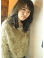 一見落ち着いた風合いですが、光が当たるとふわーっと透ける、イルミナカラーでのオリーブグレイな色味です。ふんわりとした動きが出やすいように、表面にレイヤーを入れ、束っぽく間引いてカットしました。