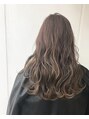 元々あったハイライトを活かして、明るすぎず暗すぎないベージュ系カラーに◎32ミリのコテでハイライトを生かすような波巻き仕上げです☆