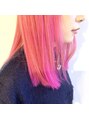 ブリーチ3.4回以上したところにピンクをのせました。カラーミューズというカラーを使っているのでダメージは0。褪色後は薄ピンクになってから 金髪に落ちていきます。