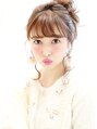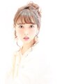 ゆるふわお団子ヘア☆顔周りの髪の毛を残しカールをつけます。全体の髪の毛を一つにまとめルーズにお団子アップピアスなどアクセサリーで可愛いポイントに☆