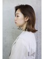 肩につくくらいの長さのロブ。カラーは毛先に向かってナチュラルなハイライトを入れてブラウンからベージュのグラデーションが入ってます。